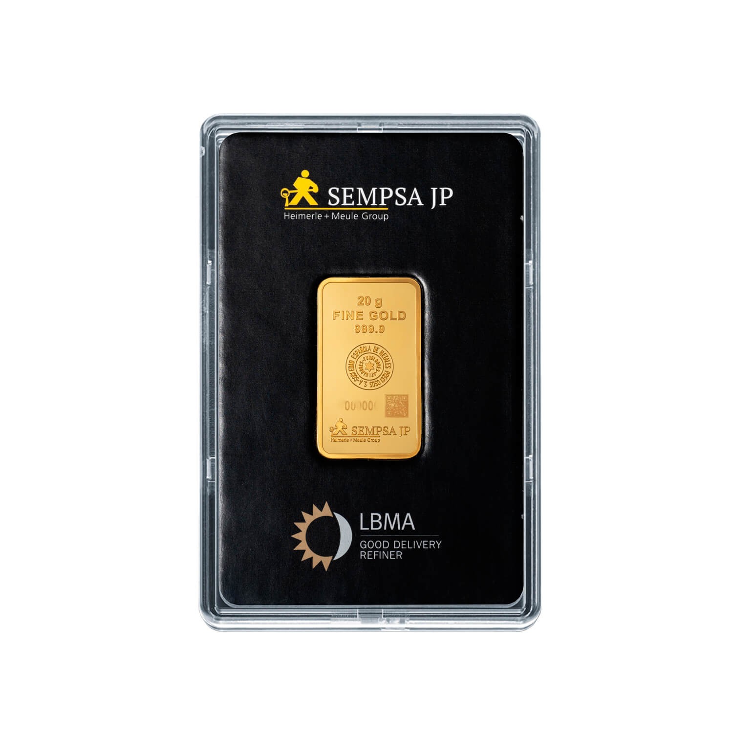 Blister con lingote de oro de 20 grs. Pureza 999.9 Marca SEMPSA.